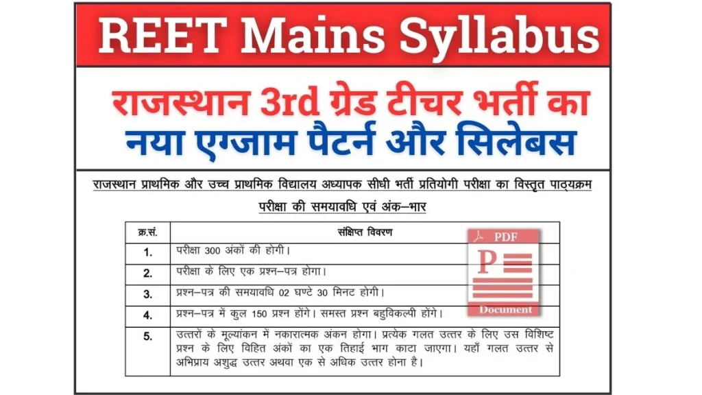 REET Mains Syllabus 2026: राजस्थान 3rd ग्रेड टीचर भर्ती का एग्जाम पैटर्न और सिलेबस जारी